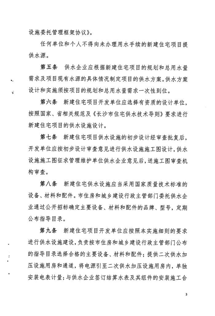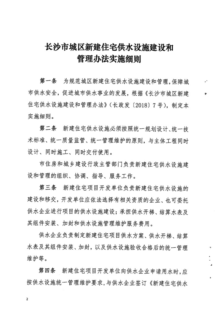 长沙市住房和城乡建设委员会 关于印发《长沙市城区新建住宅供水设施 建设和管理办法实施细则》的通知